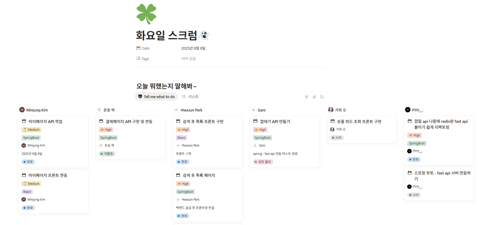 - 공용 템플릿을 사용하여 데일리 스크럼 작성